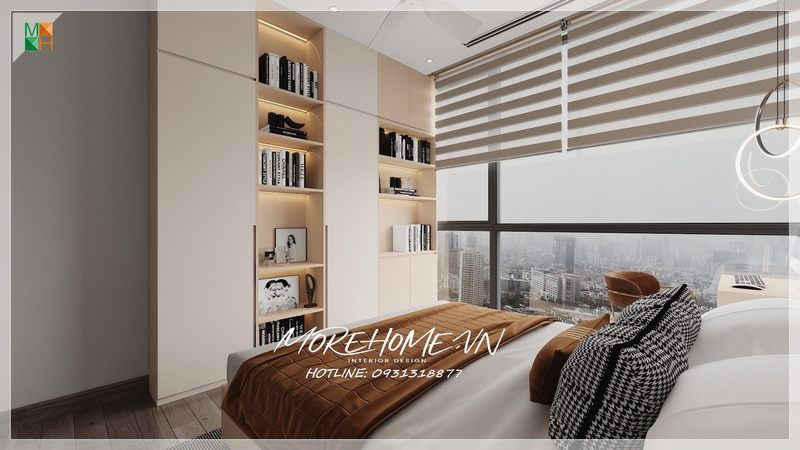 Với không gian diện tích phòng ngủ không được rộng thì việc lựa chọn nội thất vừa là tủ để đồ và có các kệ tủ để sách hay đồ vật trang trí sẽ rất tiện lợi mà lại đem tới căn phòng sự hiện đại gọn gàng.