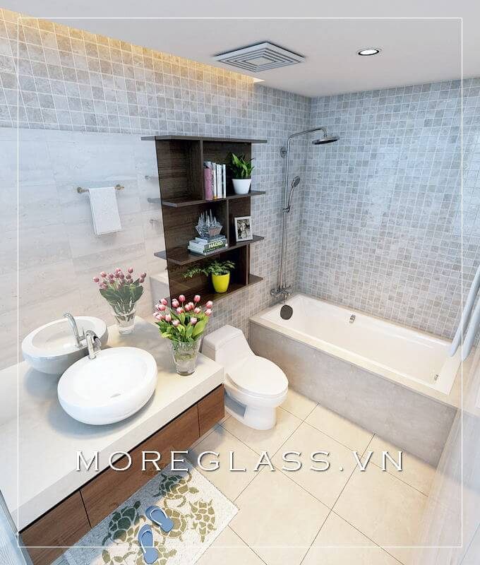 Mẫu kệ tủ phòng tắm đẹp với kiểu dáng đơn giản, nhỏ gọn giúp tiết kiệm diện tích không gian căn phòng.