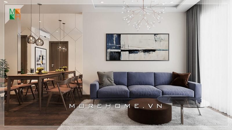 Thiết kế nội thất phòng khách chung cư hiện đại kết hợp cách bài trí đồ đạc khoa học, ngôi nhà vẫn thật rộng rãi, sáng sủa và thoáng đãng.
