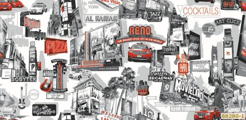 Họa tiết là những hình ảnh ô tô, ngôi nhà giấy dán tường 88280-1 khiến ngôi nhà bạn mang một phong cách hoàn toàn khác lạ