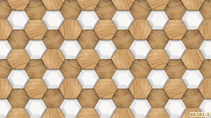 Giấy dán tường mã 88281-1 với họa tiết là những hình lục giác màu vàng và màu trắng được xếp xen kẽ nhau