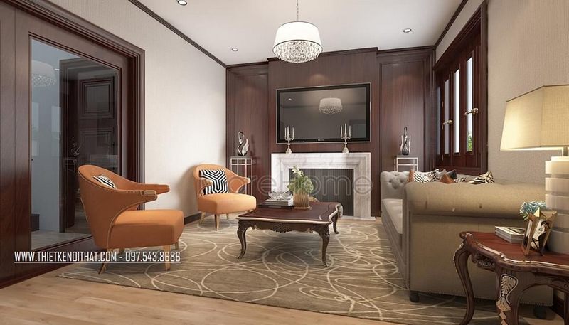 Bộ sofa phòng khách có thiết kế theo phong cách tân cổ điển bằng gỗ óc chó, sẽ làm cho không gian phòng khách của căn hộ chung cư, nhà phố, biệt thự trở nên sang trọng hơn.